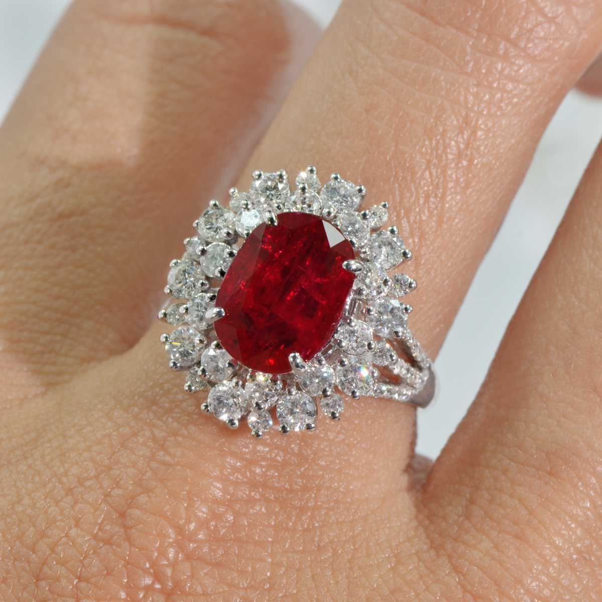 This ring is made of 18k white gold setting with ruby and diamond. This product is Certified by SuanPhlu.com.