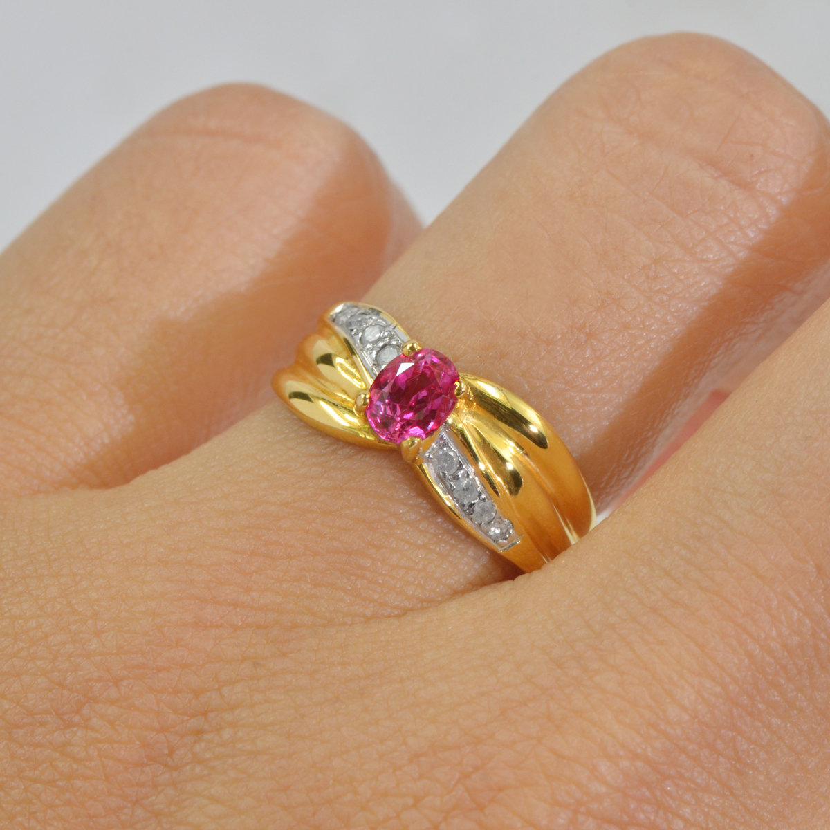 This Ruby Diamond Ring is made of 18k yellow gold setting with Burmese ruby and diamond. This product is Certified by SuanPhlu.com.