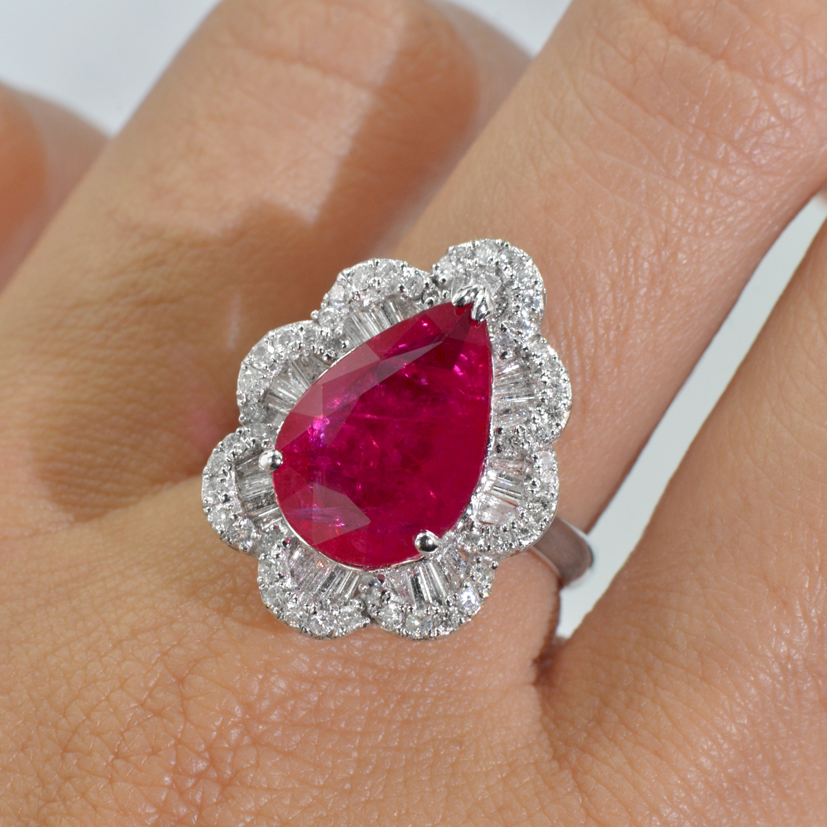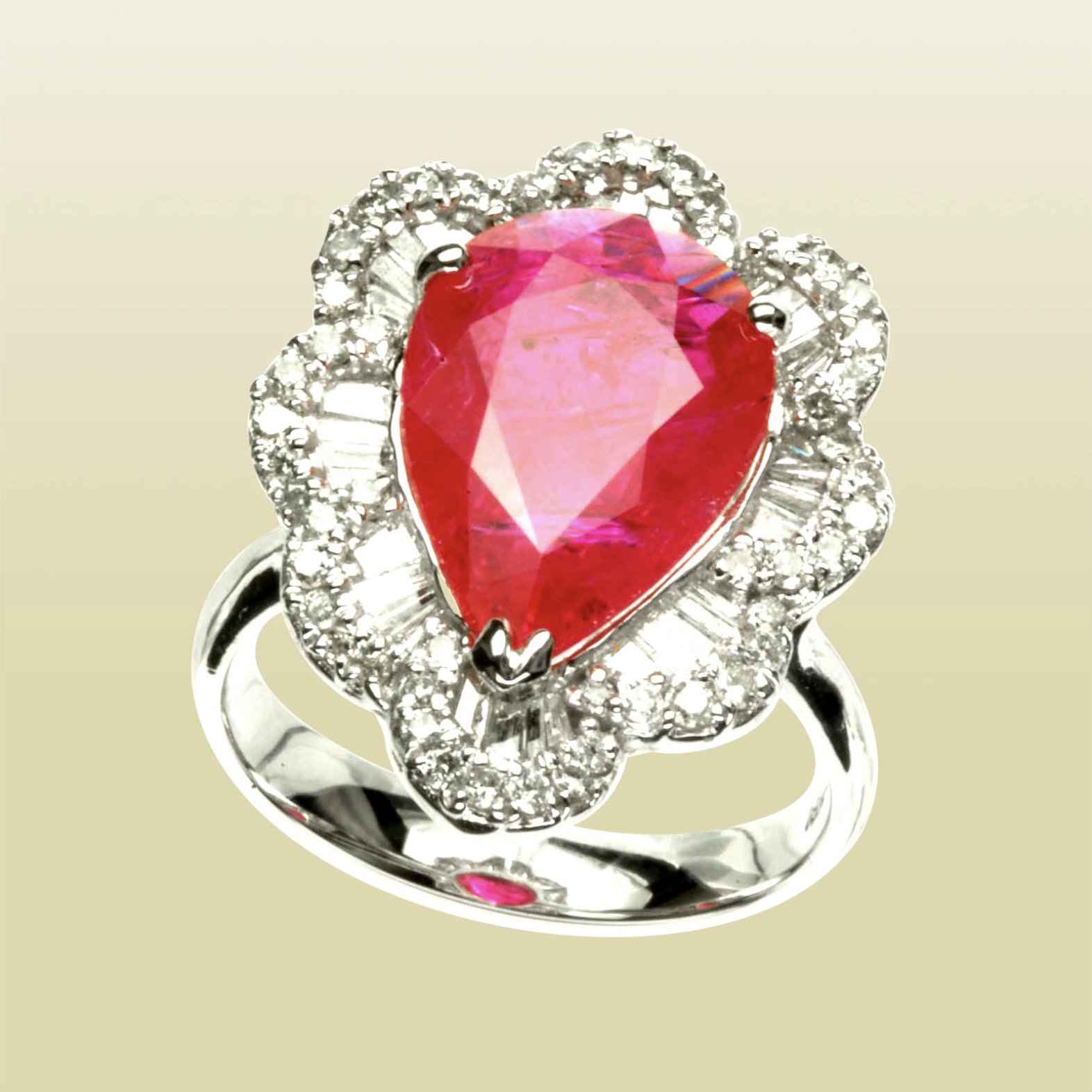 This ring is made of 18k white gold setting with ruby and diamond. This product is Certified by SuanPhlu.com.
