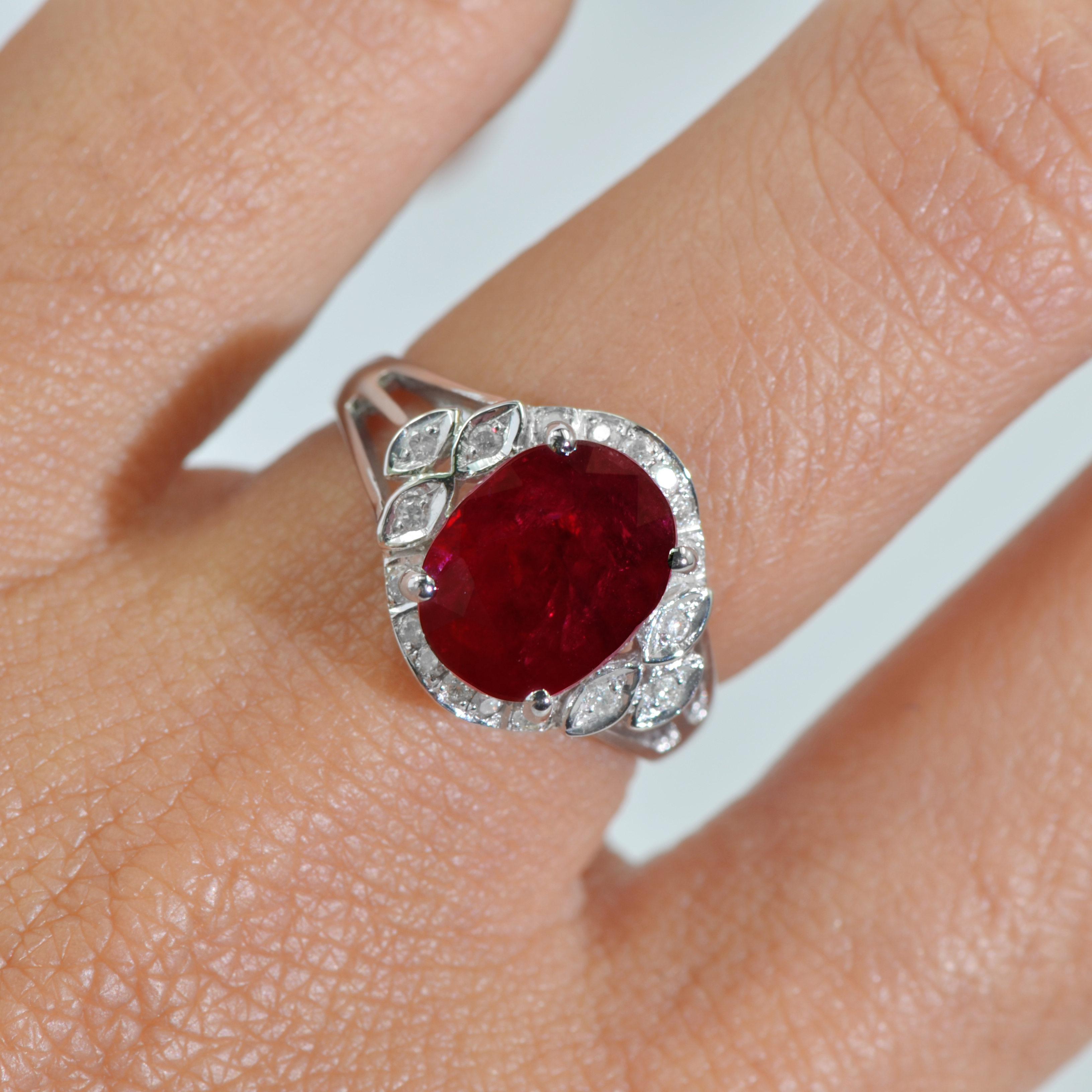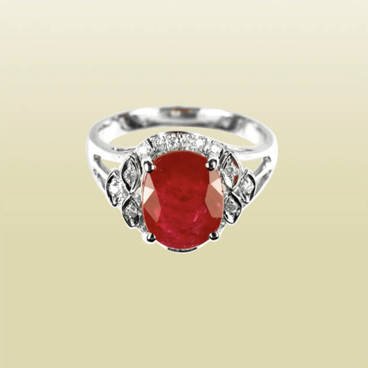 This ring is made of 18k white gold setting with ruby and diamond. This product is Certified by SuanPhlu.com.