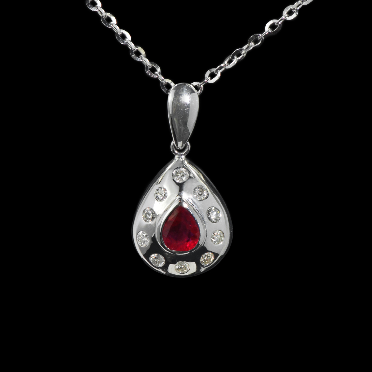 This pendant is made of 18k white gold setting with ruby and diamond. This product is Certified by SuanPhlu.com.