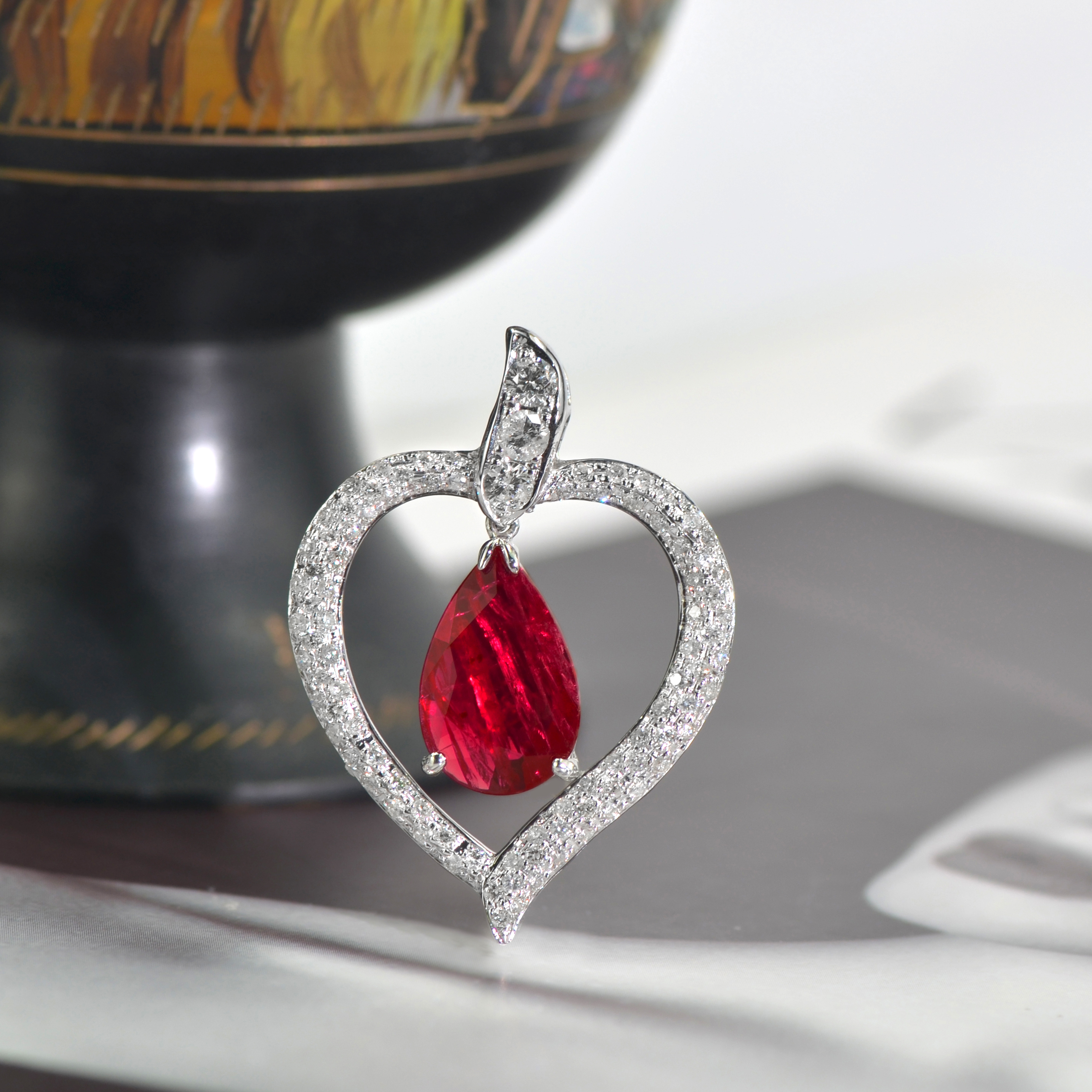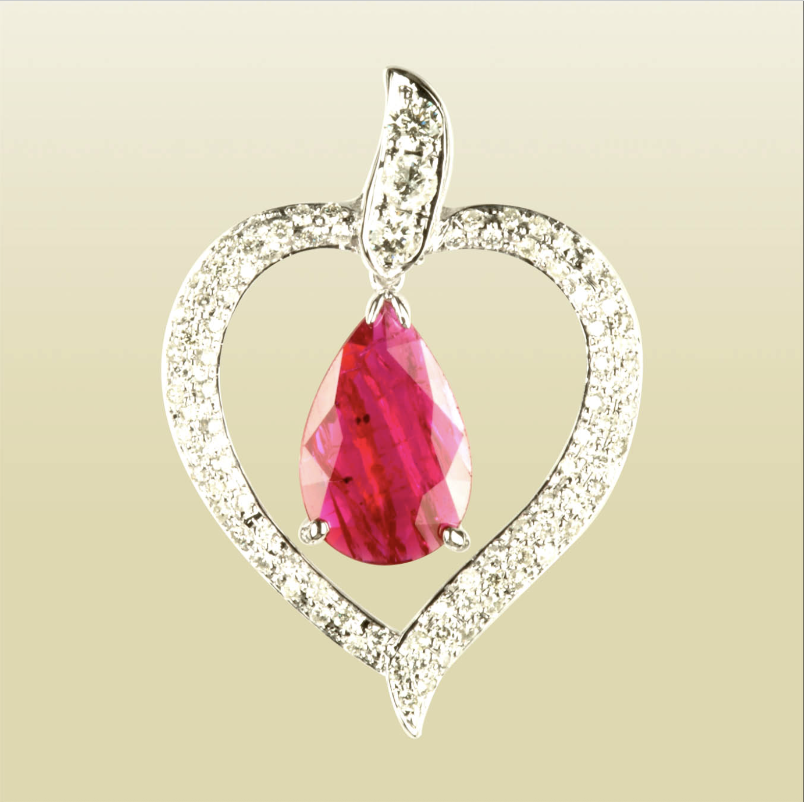 This pendant is made of 18k white gold setting with ruby and diamond. This product is Certified by SuanPhlu.com.