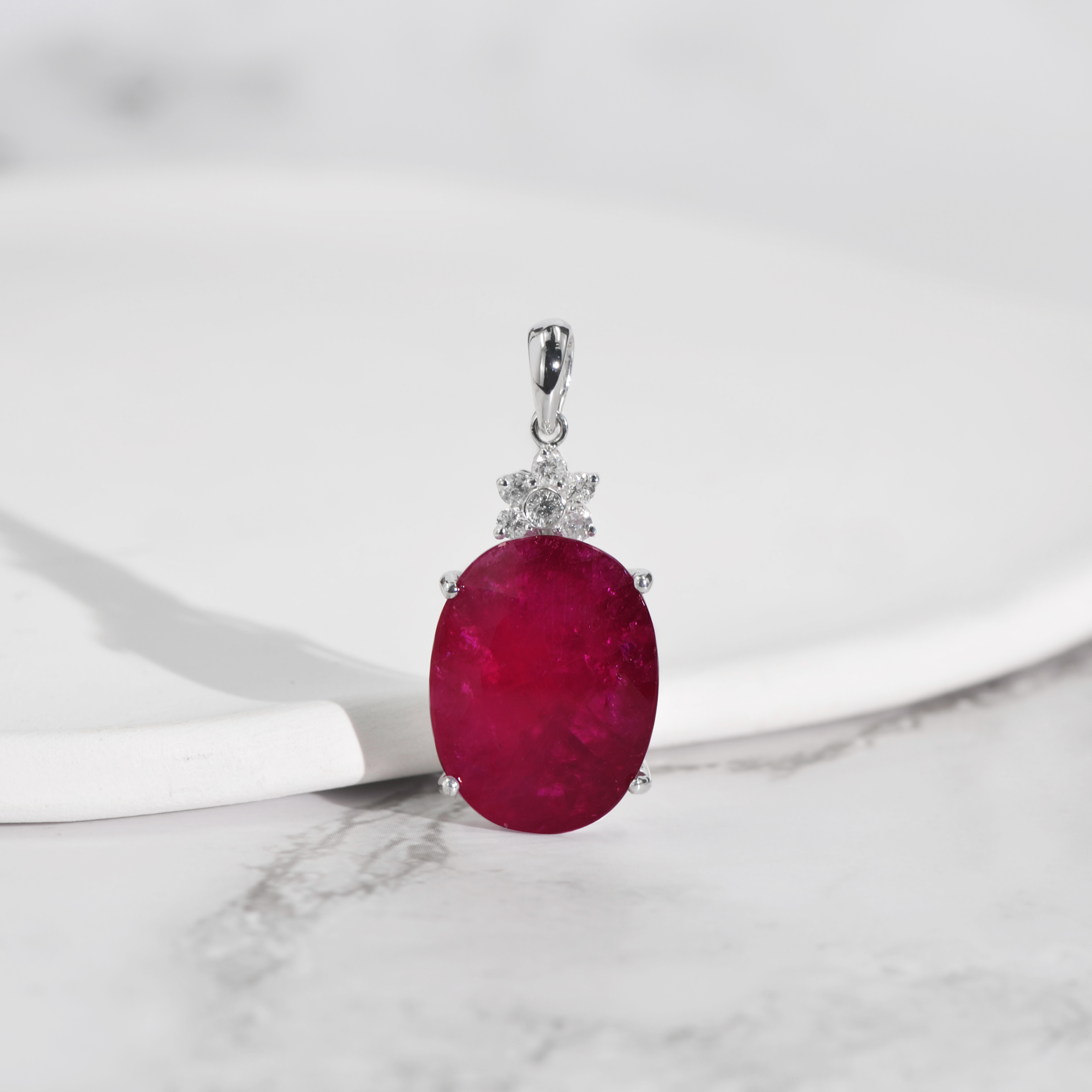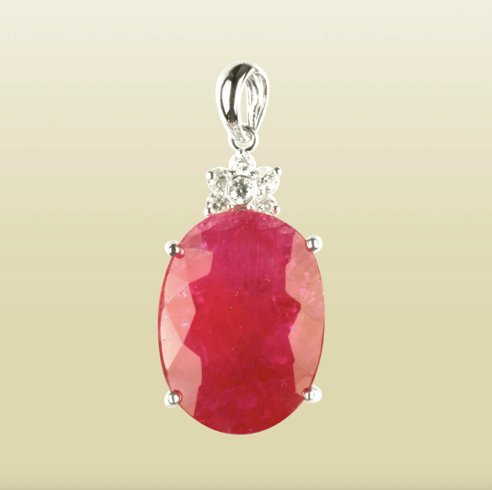 This pendant is made of 18k white gold setting with ruby and diamond. This product is Certified by SuanPhlu.com.