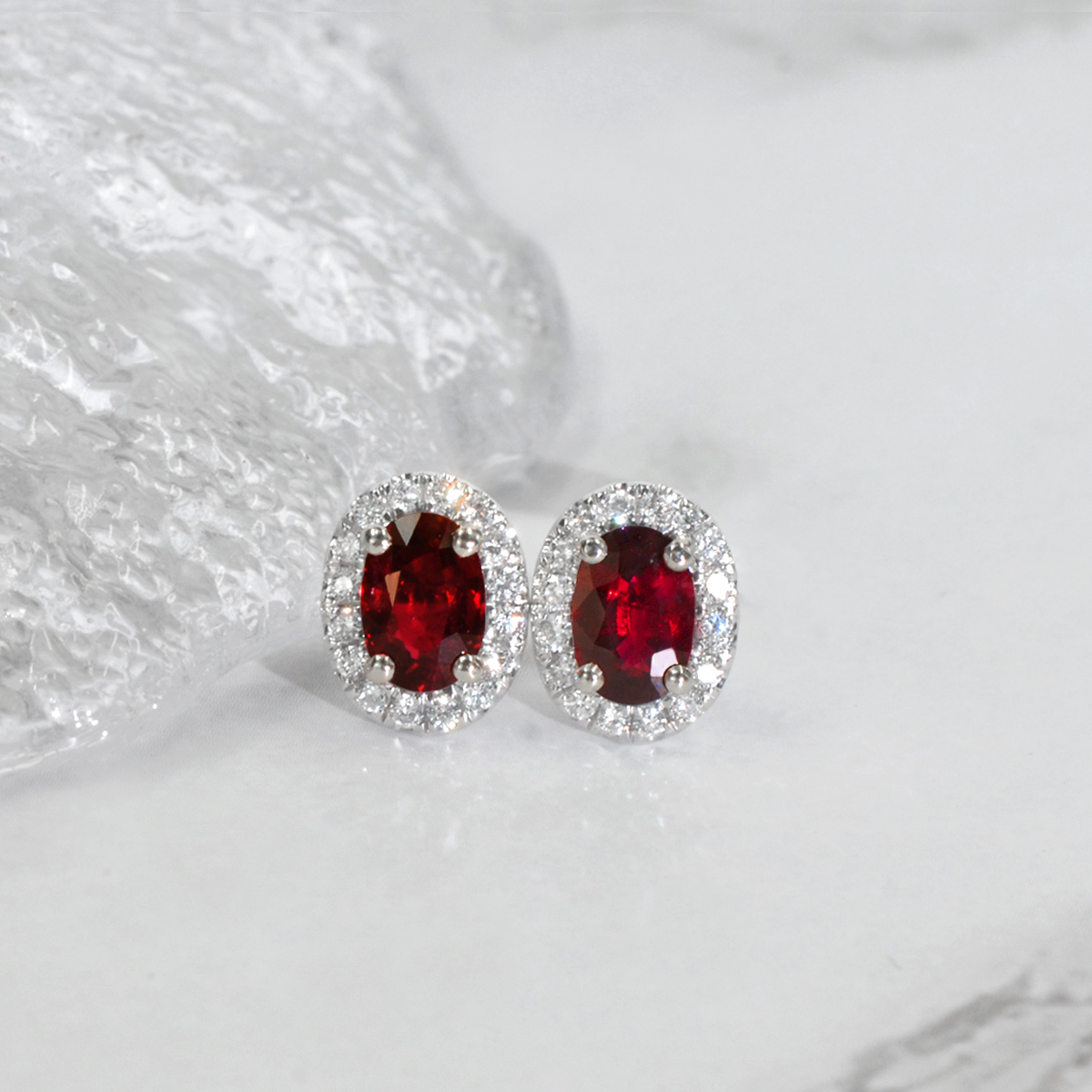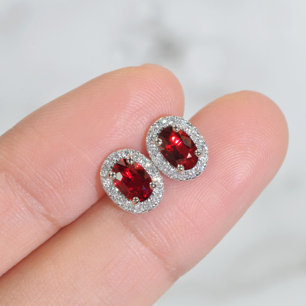 This earrings are made of 18k white gold setting with unheated ruby and diamond. This product is Certified by SuanPhlu.com.