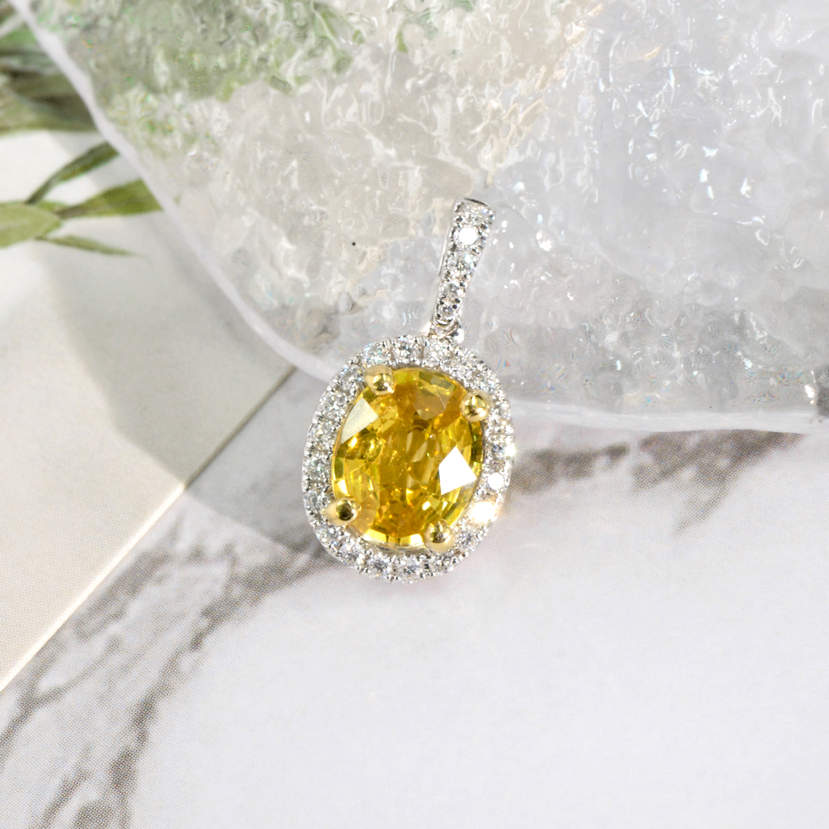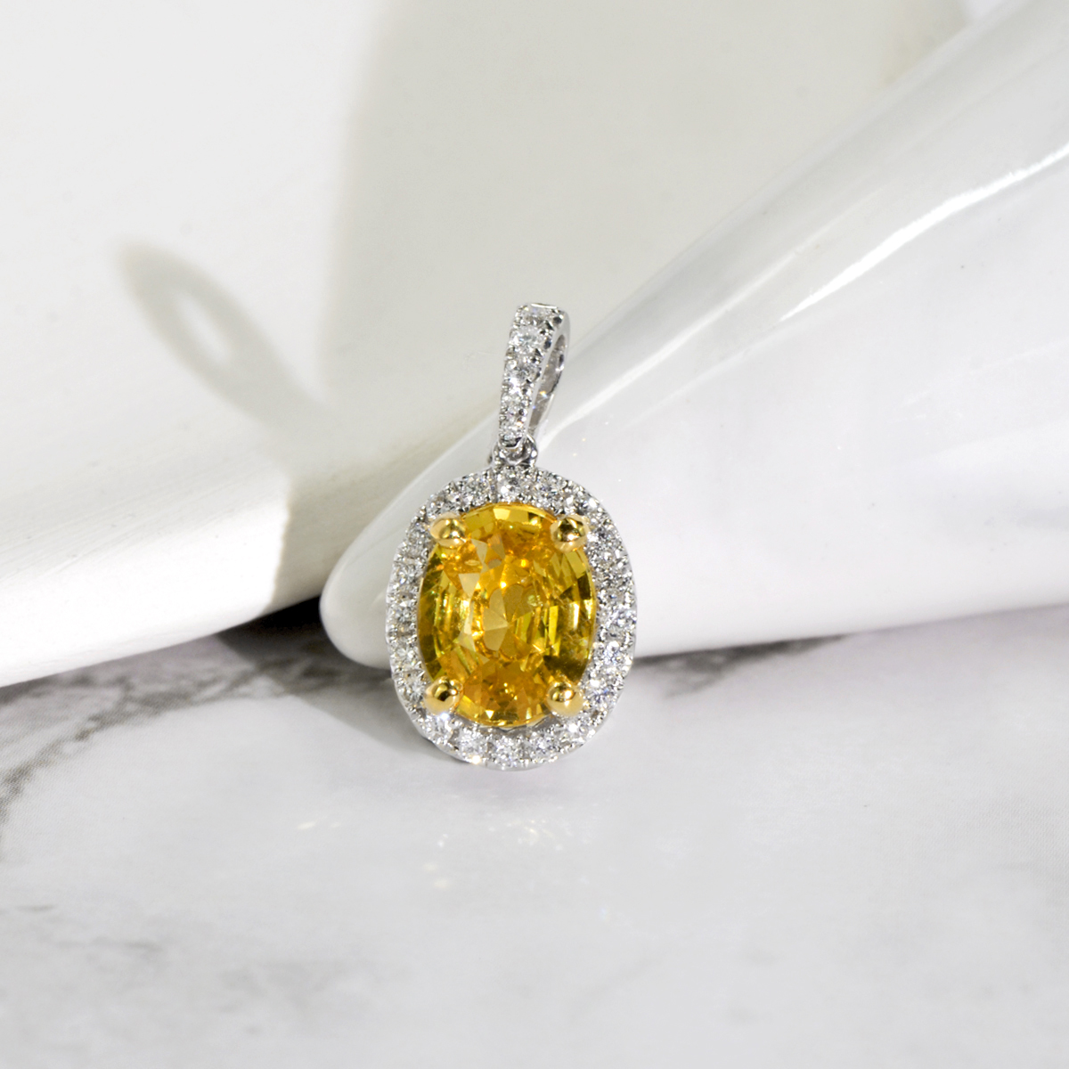 This pendant is made of 18k white gold setting with unheated yellow sapphire and diamond. This product is Certified by SuanPhlu.com.