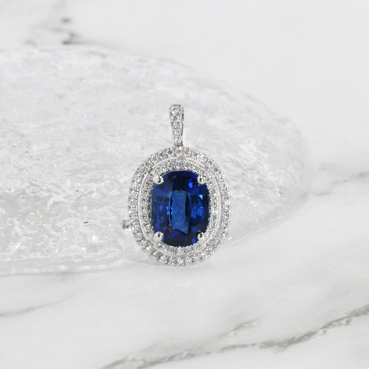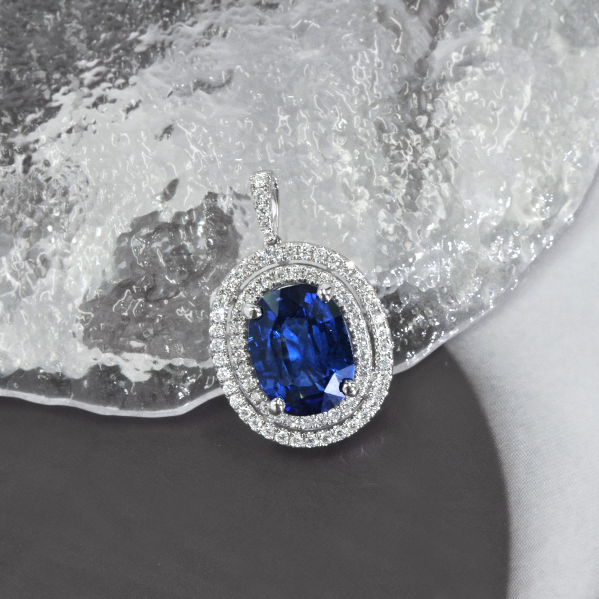 This pendant is made of 18k white gold setting with sapphire and diamond. This product is Certified by SuanPhlu.com.