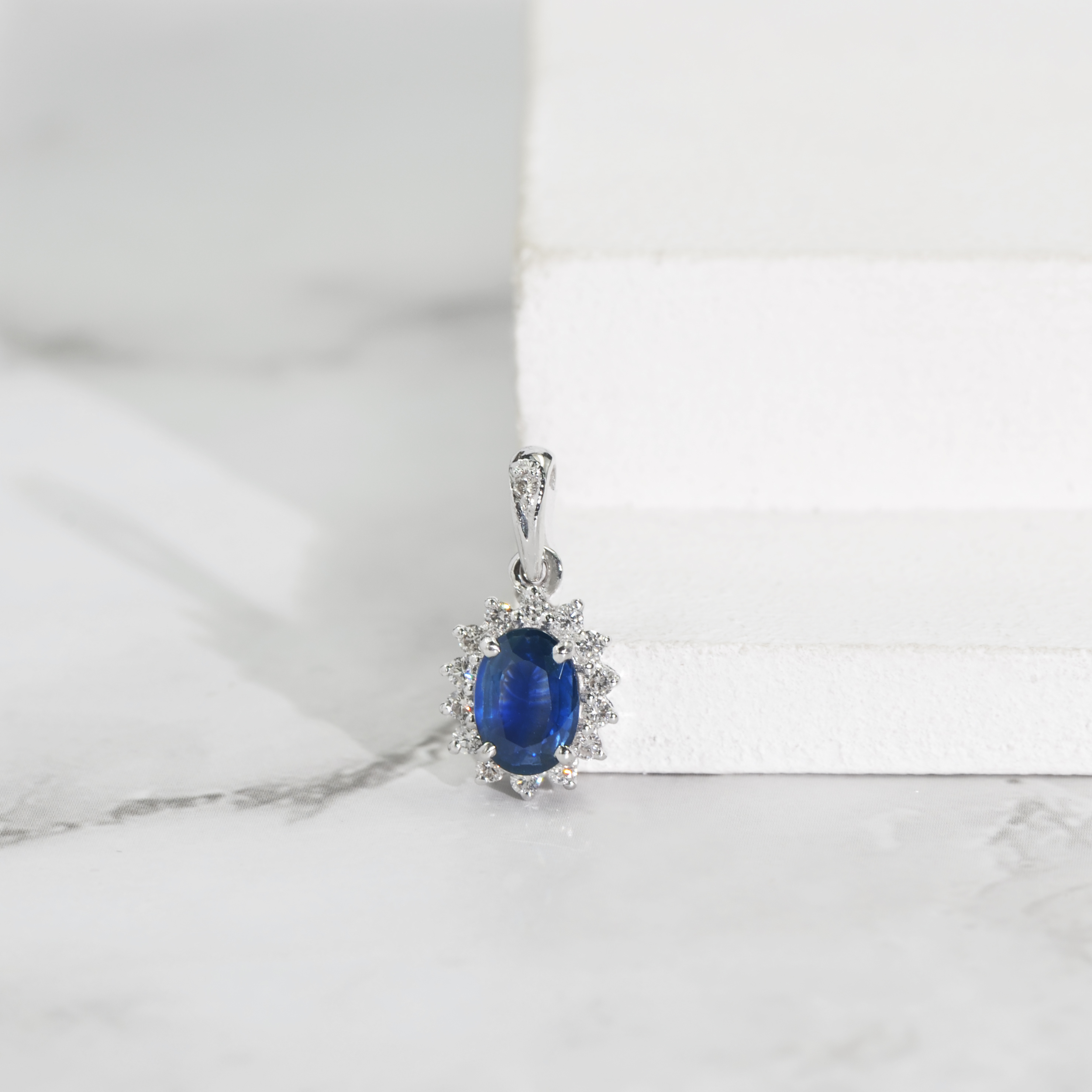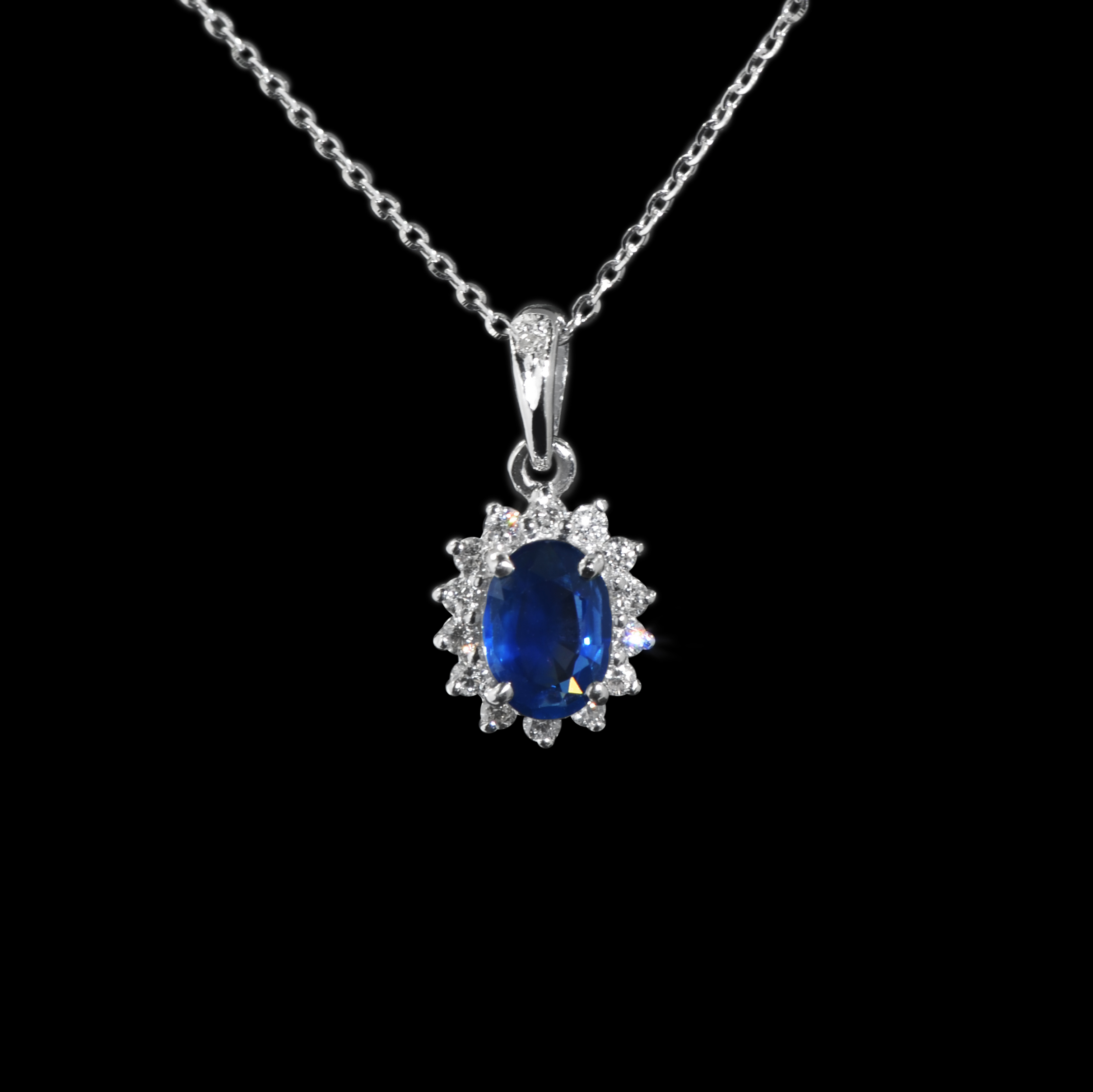This pendant is made of 18k white gold setting with sapphire and diamond. This product is Certified by SuanPhlu.com.