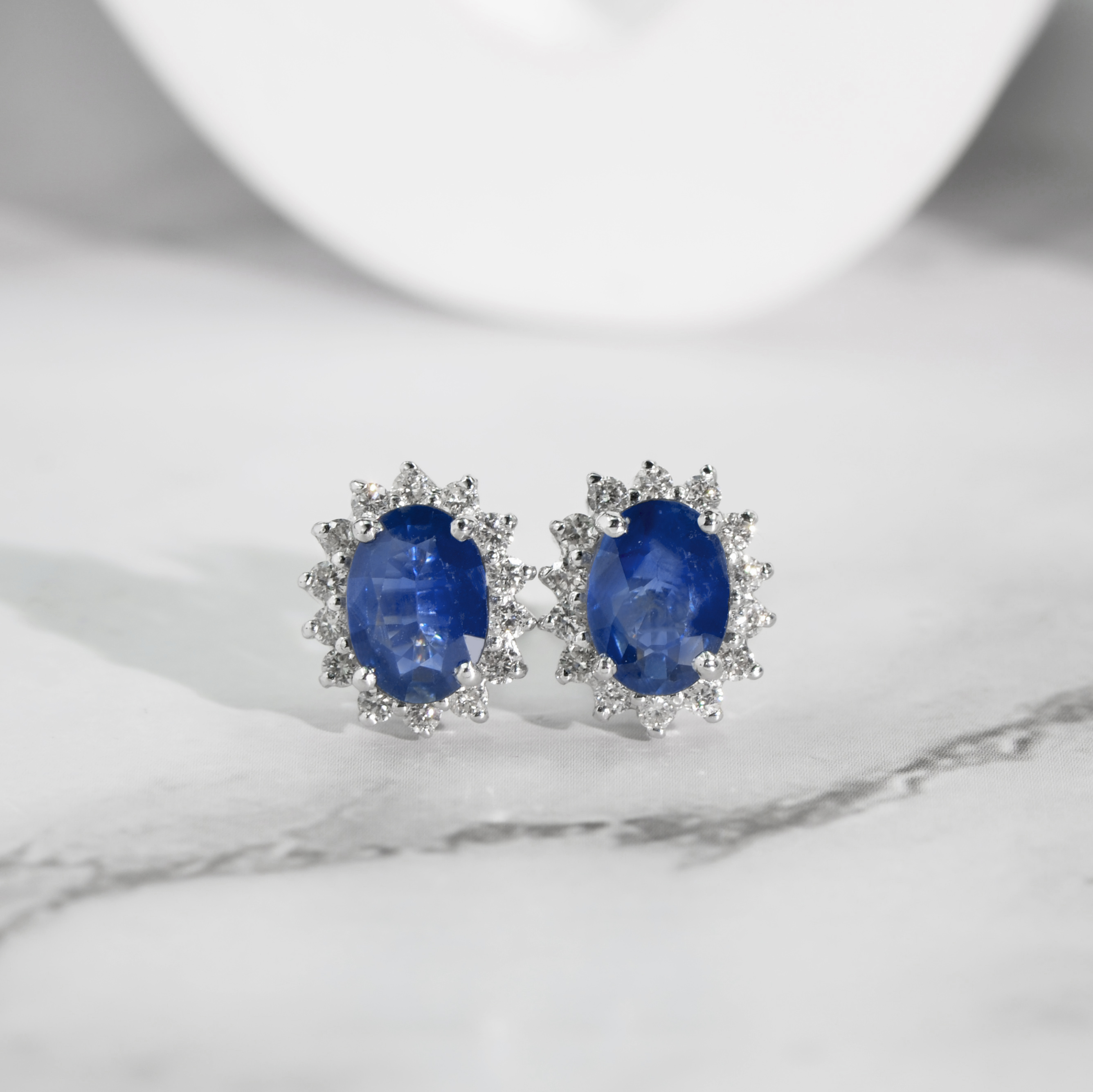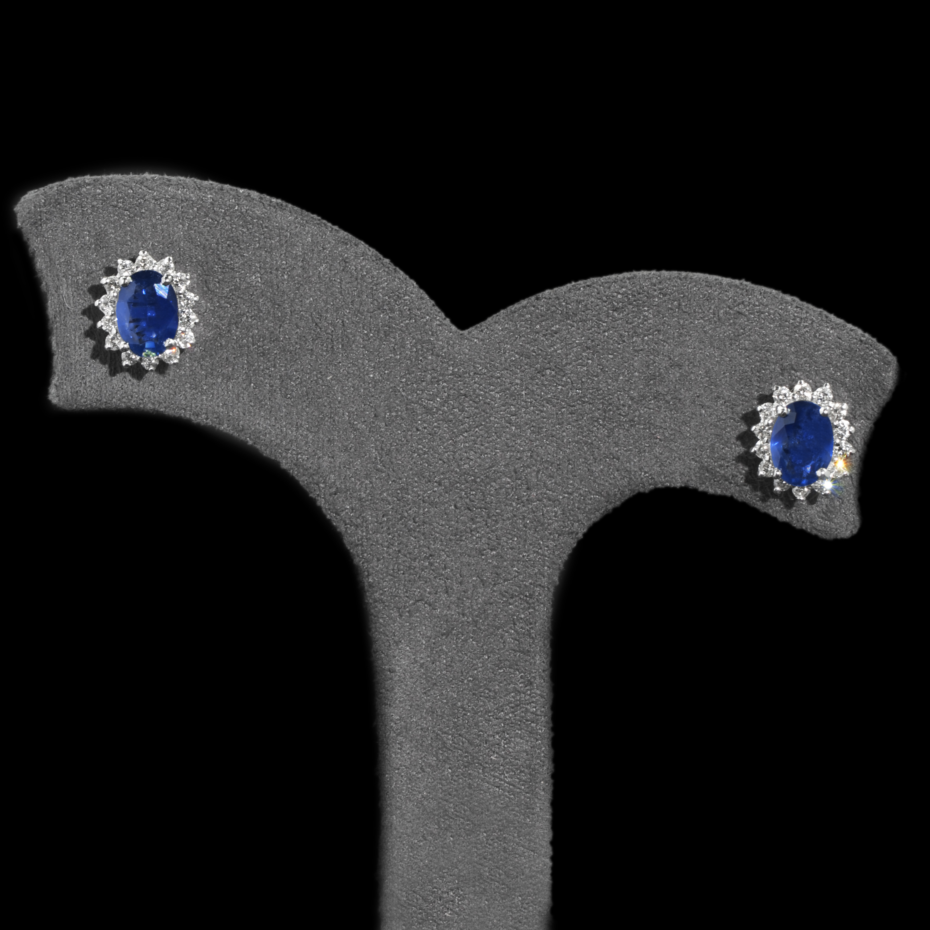 This earrings are made of 18k white gold setting with sapphire and diamond. This product is Certified by SuanPhlu.com.