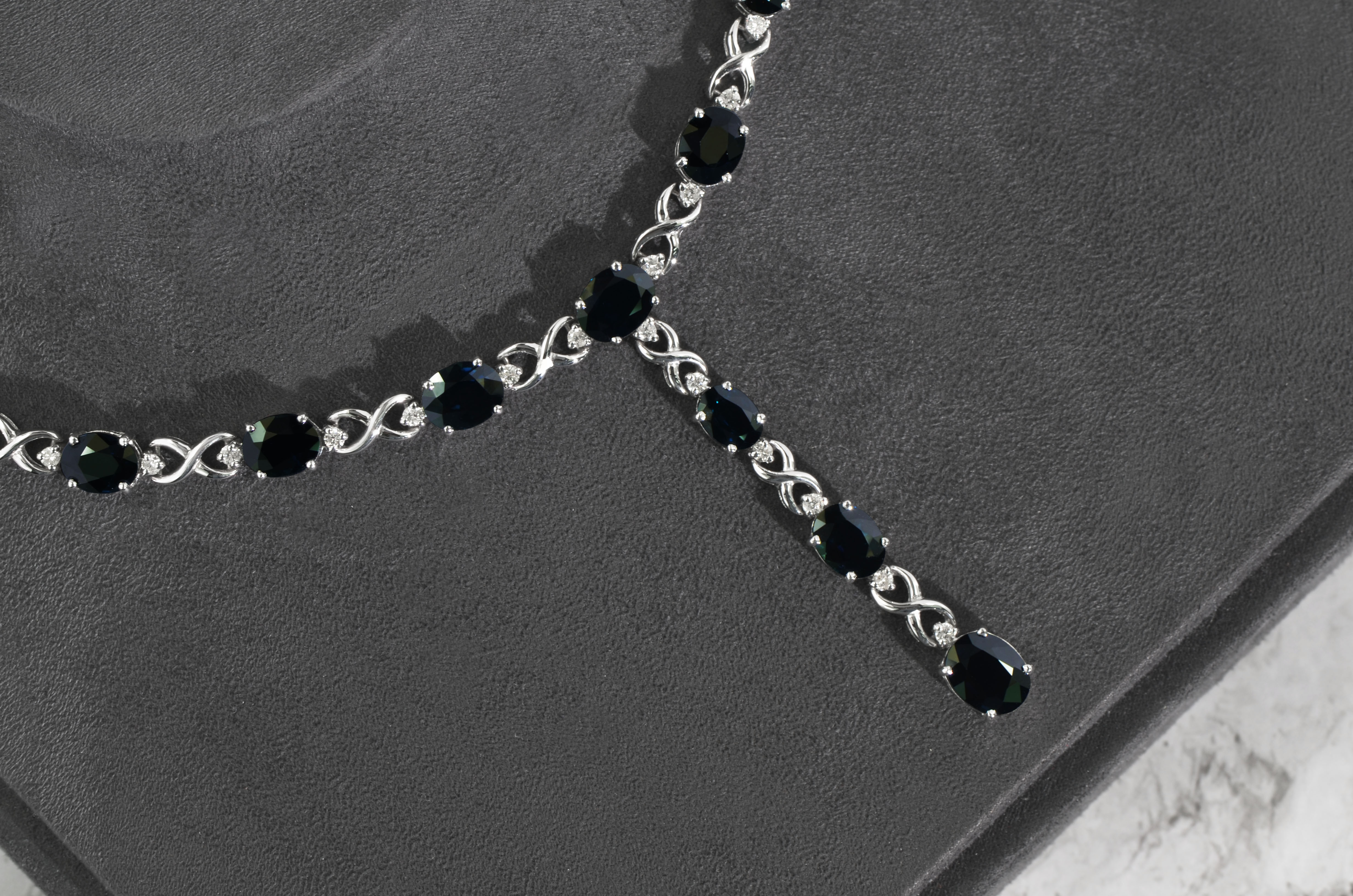 This necklace is made of 18k white gold setting with sapphire and diamond. This product is Certified by SuanPhlu.com.