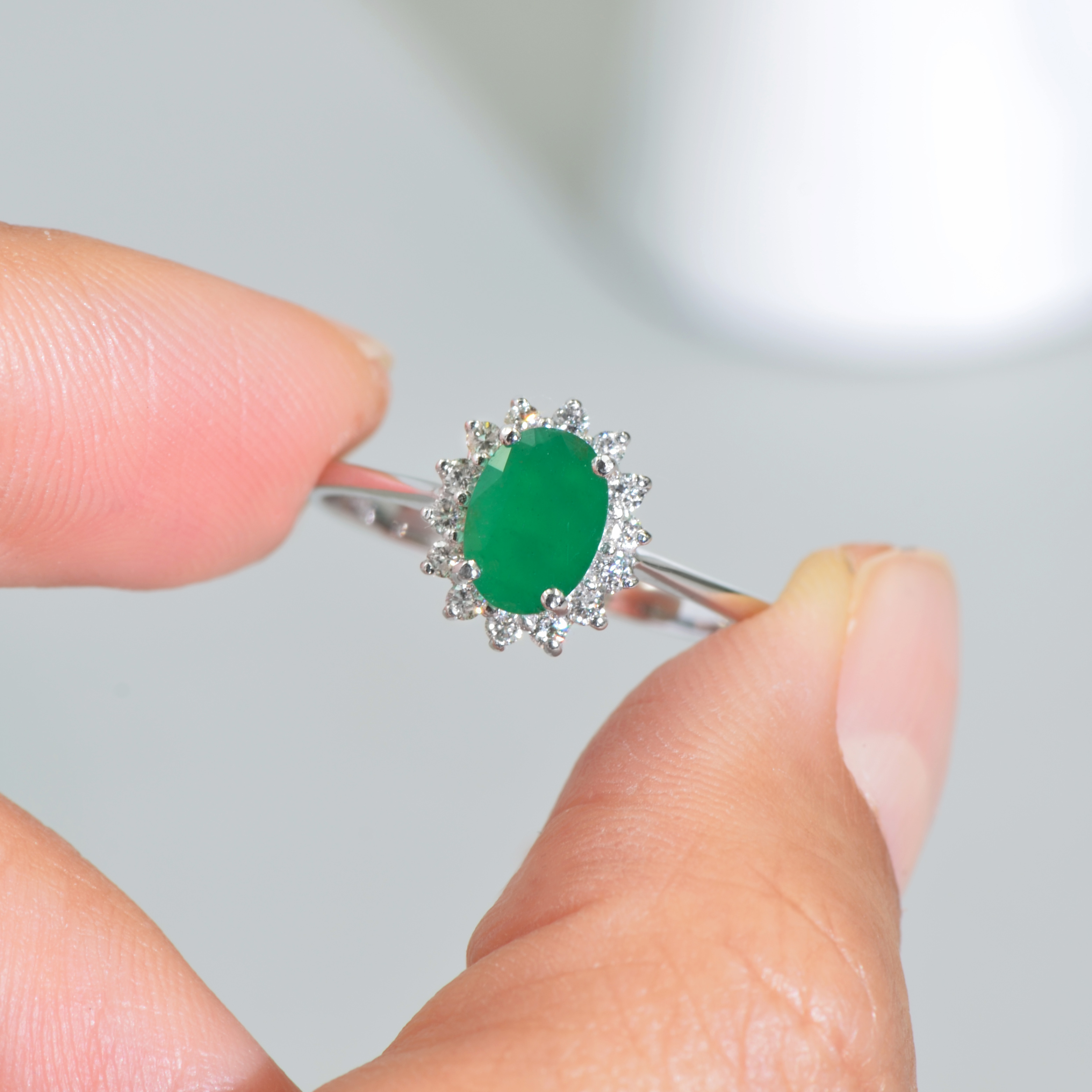 This ring is made of 18k white gold setting with emerald and diamond. This product is Certified by SuanPhlu.com.