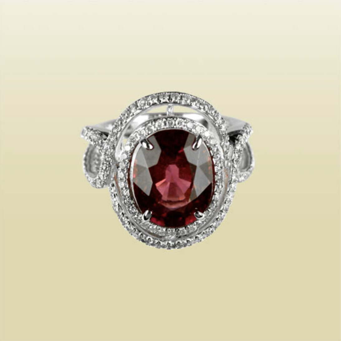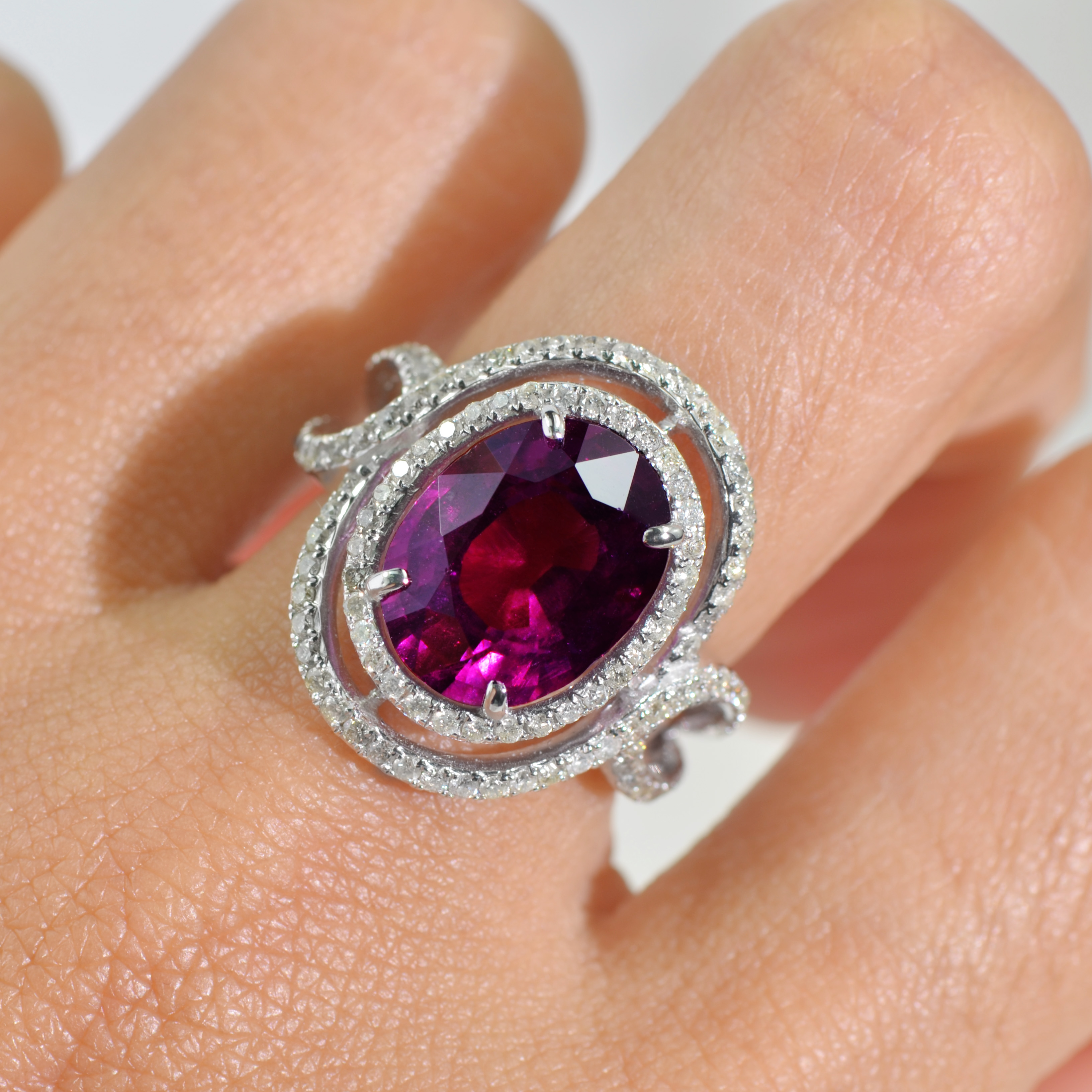 This ring is made of 18k white gold setting with rhodolite and diamond. This product is Certified by SuanPhlu.com.